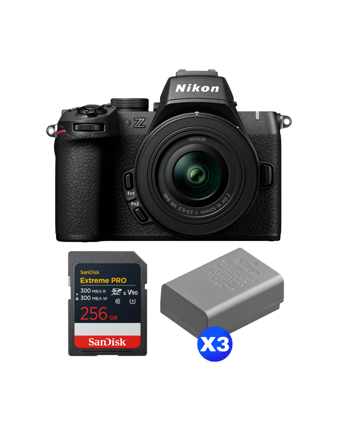 Nikon Z50 II + 16-50mm f/3.5-6.3 VR + 1 SanDisk 256GB Extreme PRO UHS-II SDXC + 3 Nikon EN-EL25a