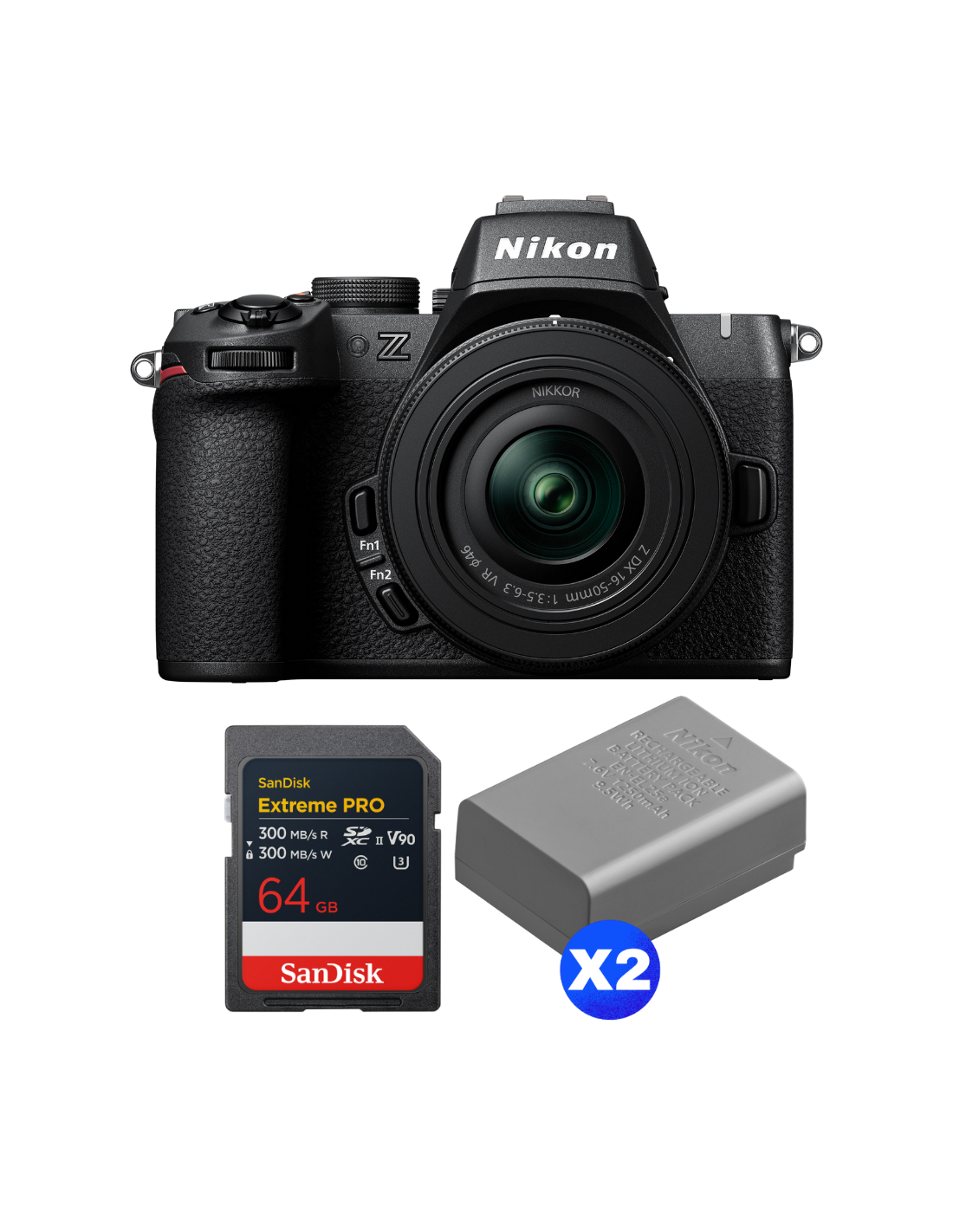 Nikon Z50 II + 16-50mm f/3.5-6.3 VR + 1 SanDisk 64GB Extreme PRO UHS-II SDXC + 2 Nikon EN-EL25a