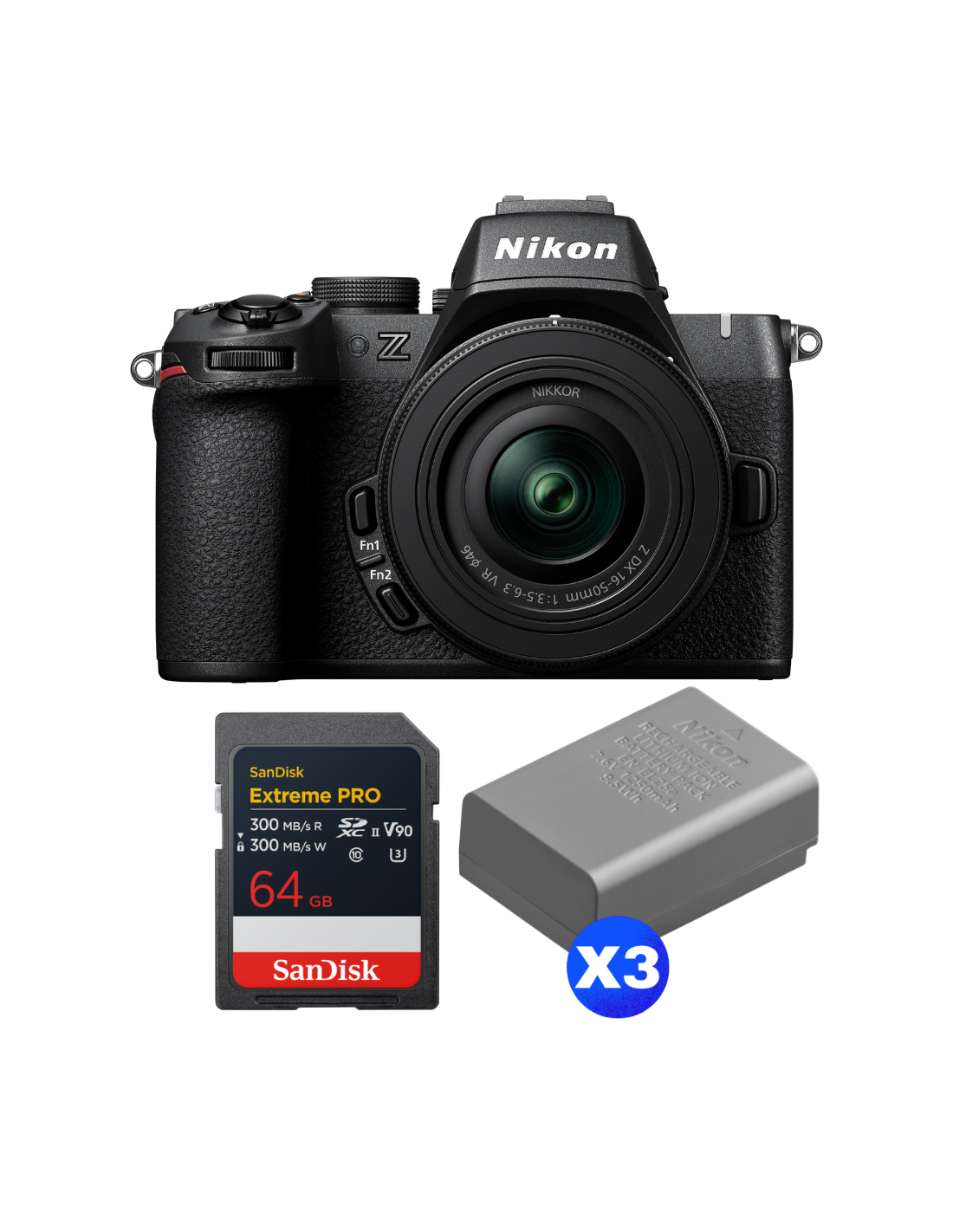 Nikon Z50 II + 16-50mm f/3.5-6.3 VR + 1 SanDisk 64GB Extreme PRO UHS-II SDXC + 3 Nikon EN-EL25a