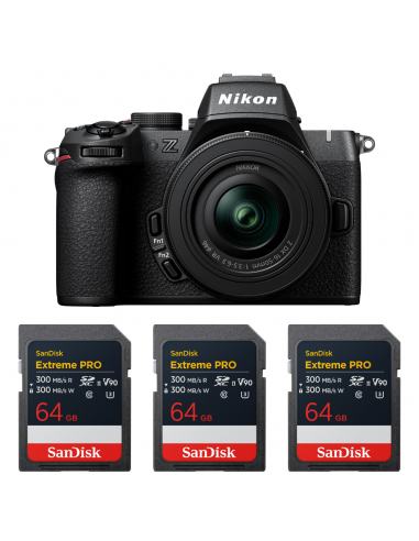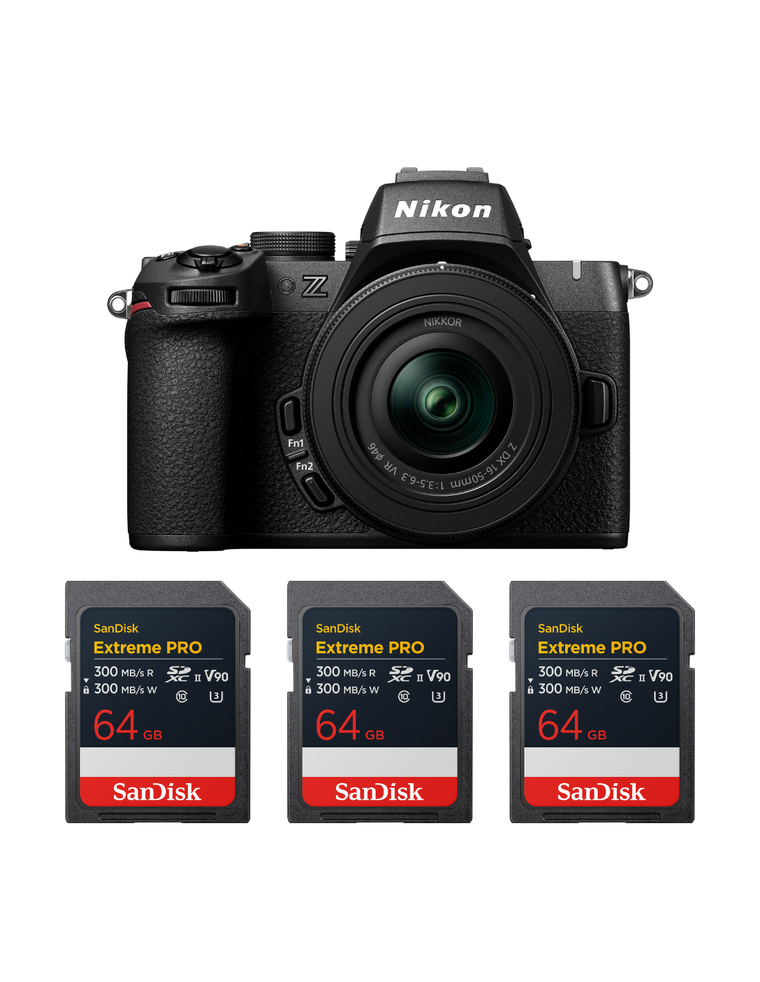 Nikon Z50 II + 16-50mm f/3.5-6.3 VR + 3 SanDisk 64GB Extreme PRO UHS-II SDXC