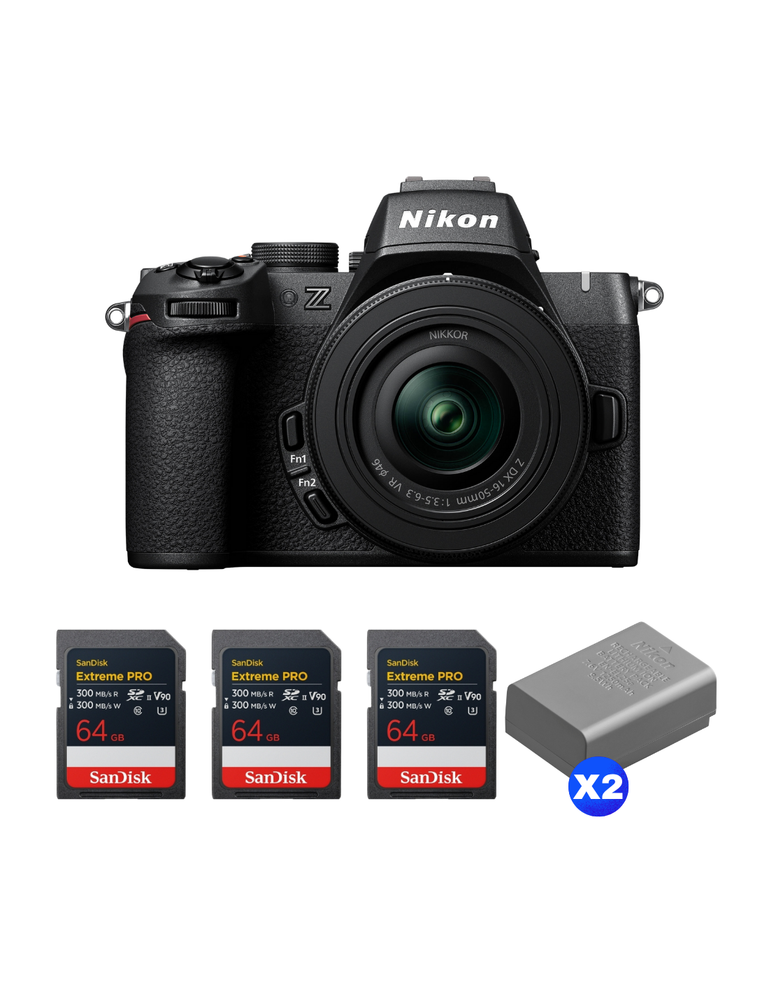 Nikon Z50 II + 16-50mm f/3.5-6.3 VR + 3 SanDisk 64GB Extreme PRO UHS-II SDXC + 2 Nikon EN-EL25a