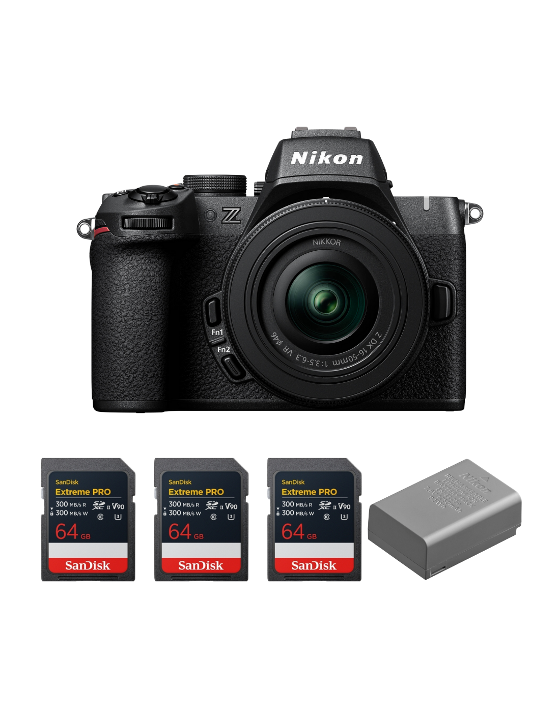 Nikon Z50 II + 16-50mm f/3.5-6.3 VR + 3 SanDisk 64GB Extreme PRO UHS-II SDXC + Nikon EN-EL25a