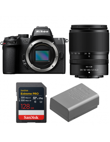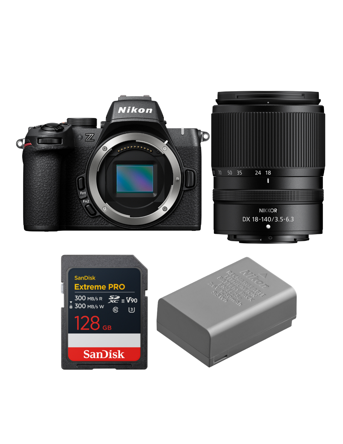 Nikon Z50 II + 18-140mm f/3.5-6.3 VR + 1 SanDisk 128GB Extreme PRO UHS-II SDXC + Nikon EN-EL25a