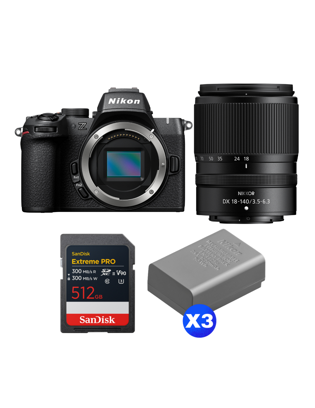 Nikon Z50 II + 18-140mm f/3.5-6.3 VR + 1 SanDisk 512GB Extreme PRO UHS-II SDXC + 3 Nikon EN-EL25a
