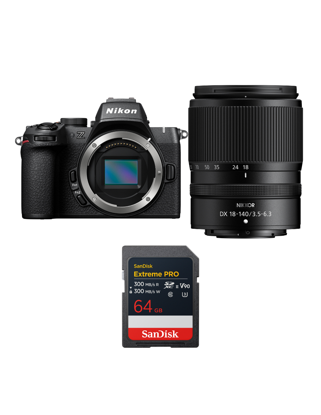Nikon Z50 II + 18-140mm f/3.5-6.3 VR + 1 SanDisk 64GB Extreme PRO UHS-II SDXC