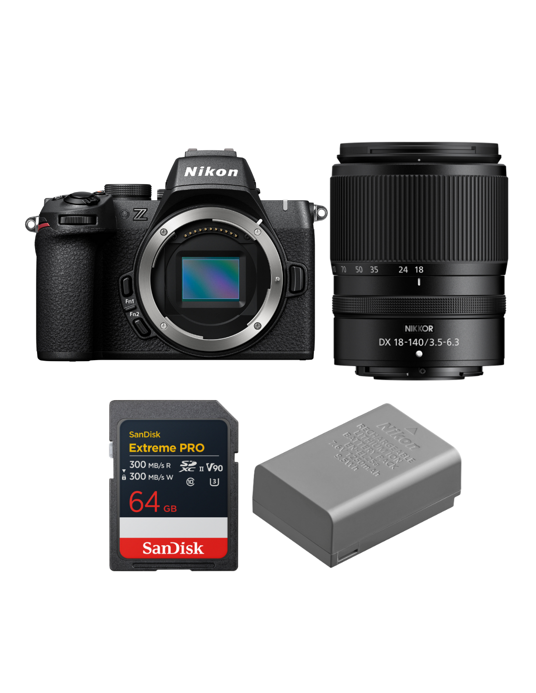 Nikon Z50 II + 18-140mm f/3.5-6.3 VR + 1 SanDisk 64GB Extreme PRO UHS-II SDXC + Nikon EN-EL25a