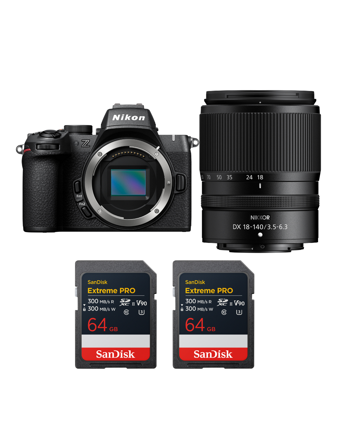 Nikon Z50 II + 18-140mm f/3.5-6.3 VR + 2 SanDisk 64GB Extreme PRO UHS-II SDXC