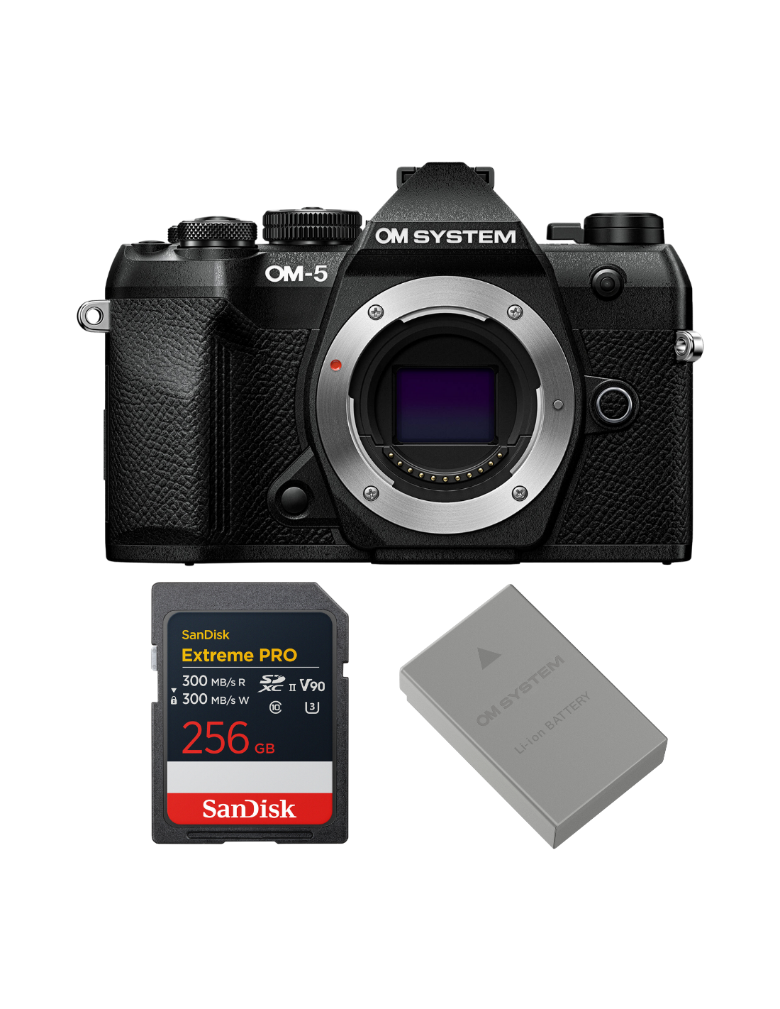 OM SYSTEM OM-5 Mark II Noir + 1 SanDisk 256GB Extreme PRO UHS-II SDXC + OM System BLS-50