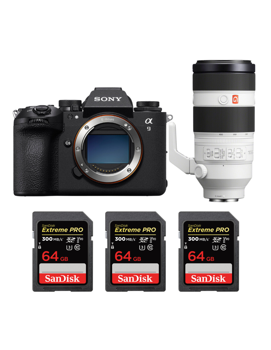 Sony A9 III + FE 100-400mm f/4.5-5.6 GM OSS + 3 SanDisk 64GB Extreme PRO UHS-II SDXC 300 MB/s