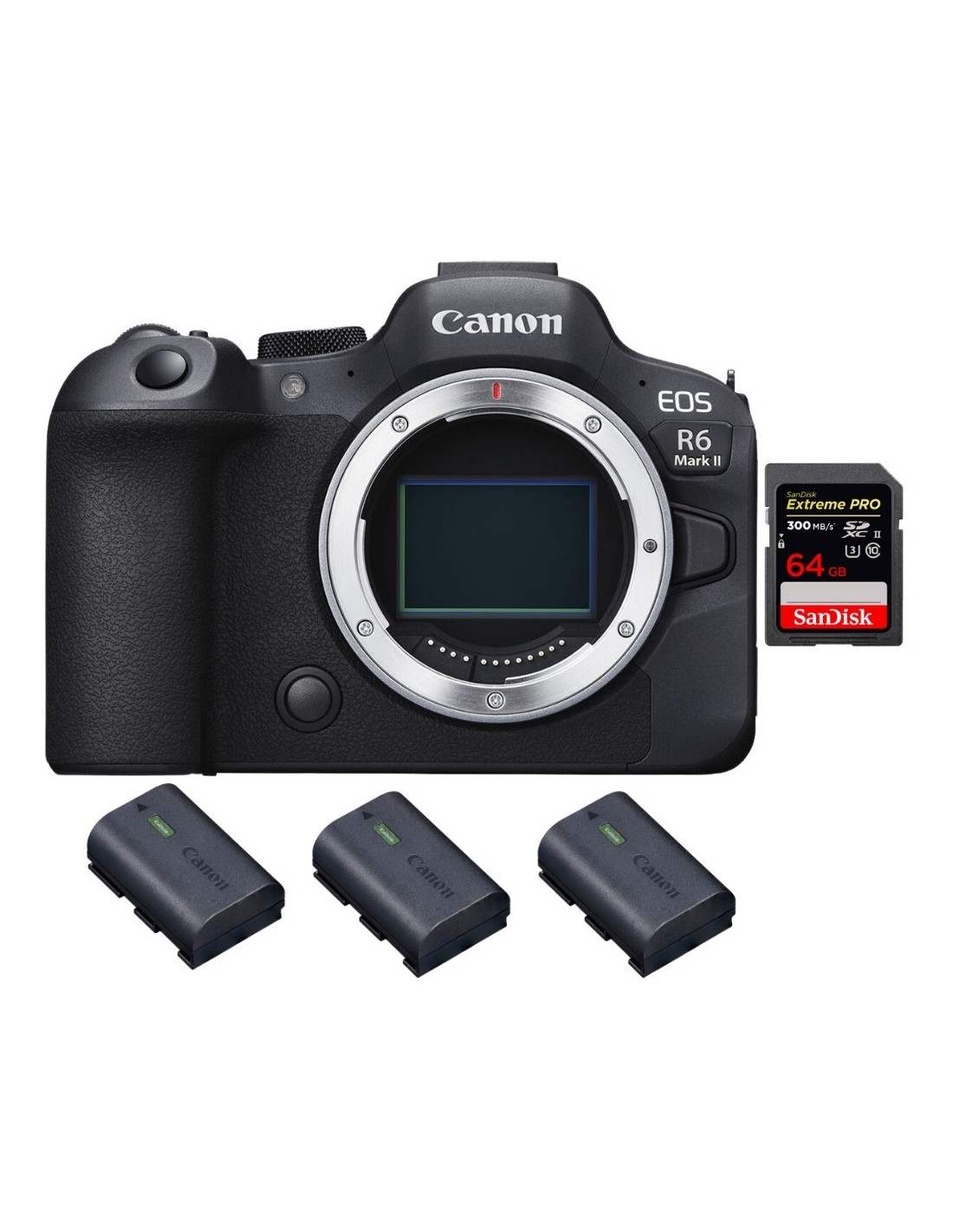 Canon EOS R6 Mark II + 1 SanDisk 64GB Extreme PRO UHS-II 300 MB/s + 3 Canon LP-E6NH - Appareil hybride Plein Format
