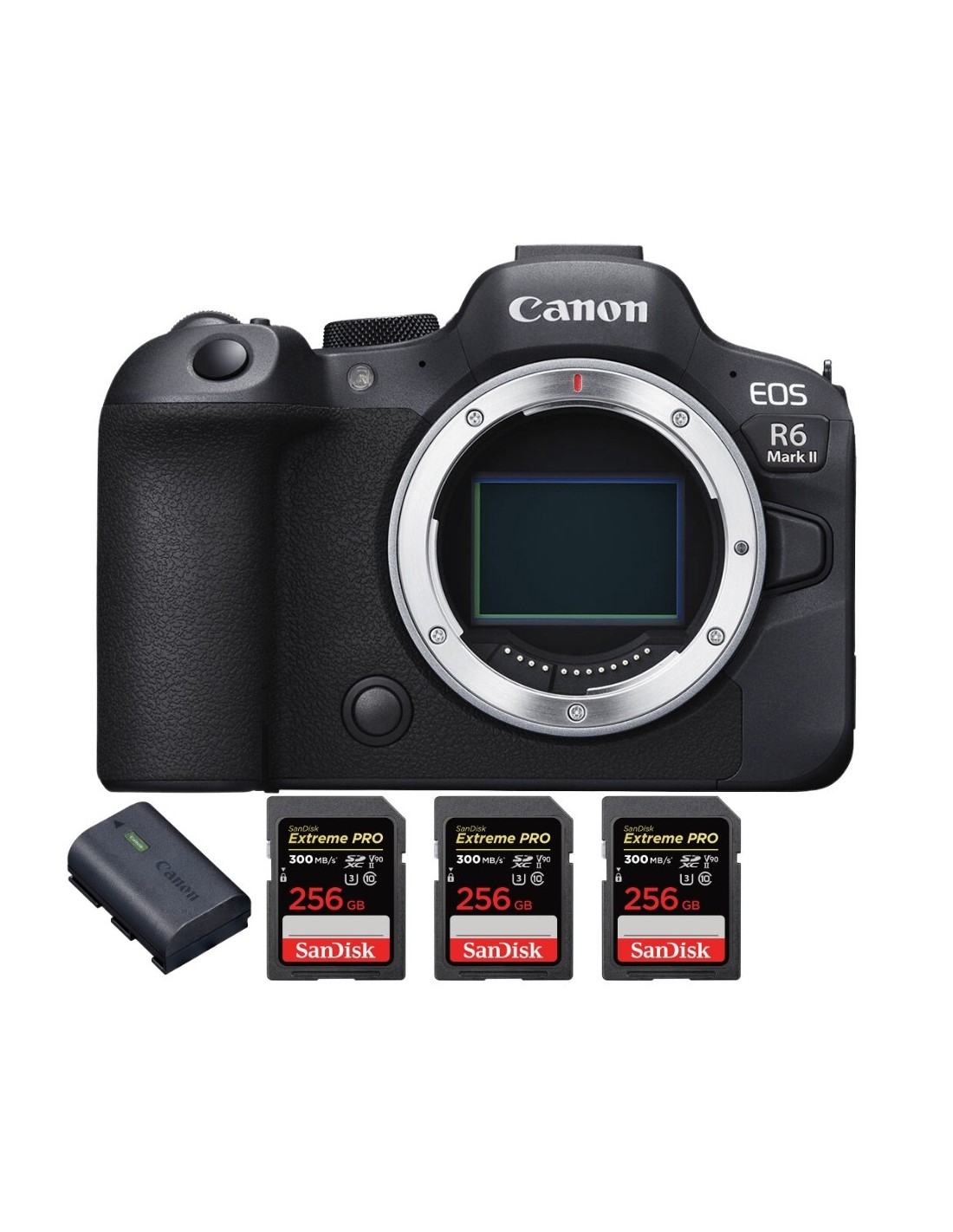 Canon EOS R6 Mark II + 3 SanDisk 256GB Extreme PRO UHS-II 300 MB/s + 1 Canon LP-E6NH - Appareil hybride Plein Format