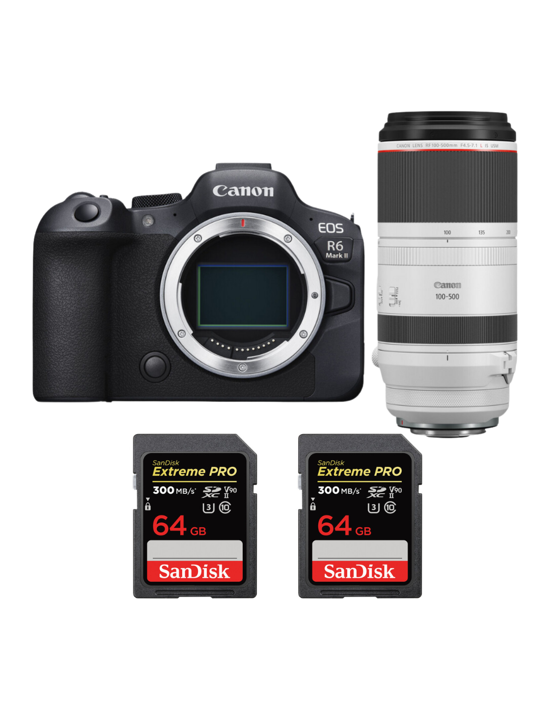 Canon EOS R6 Mark II + RF 100-500mm f/4.5-7.1 L IS USM + 2 SanDisk 64GB Extreme PRO UHS-II SDXC 300 MB/s