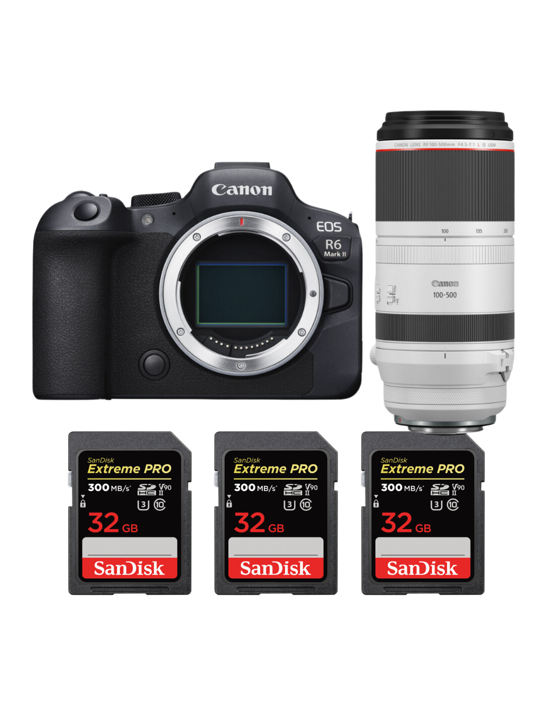 Canon EOS R6 Mark II + RF 100-500mm f/4.5-7.1 L IS USM + 3 SanDisk 32GB Extreme PRO UHS-II SDXC 300 MB/s