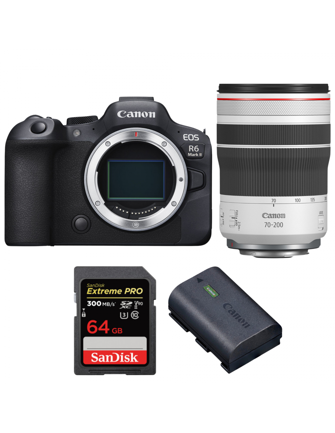 Canon EOS R6 Mark II + RF 70-200mm f/4 L IS USM + 1 SanDisk 64GB Extreme PRO UHS-II SDXC 300 MB/s + 1 Canon LP-E6NH