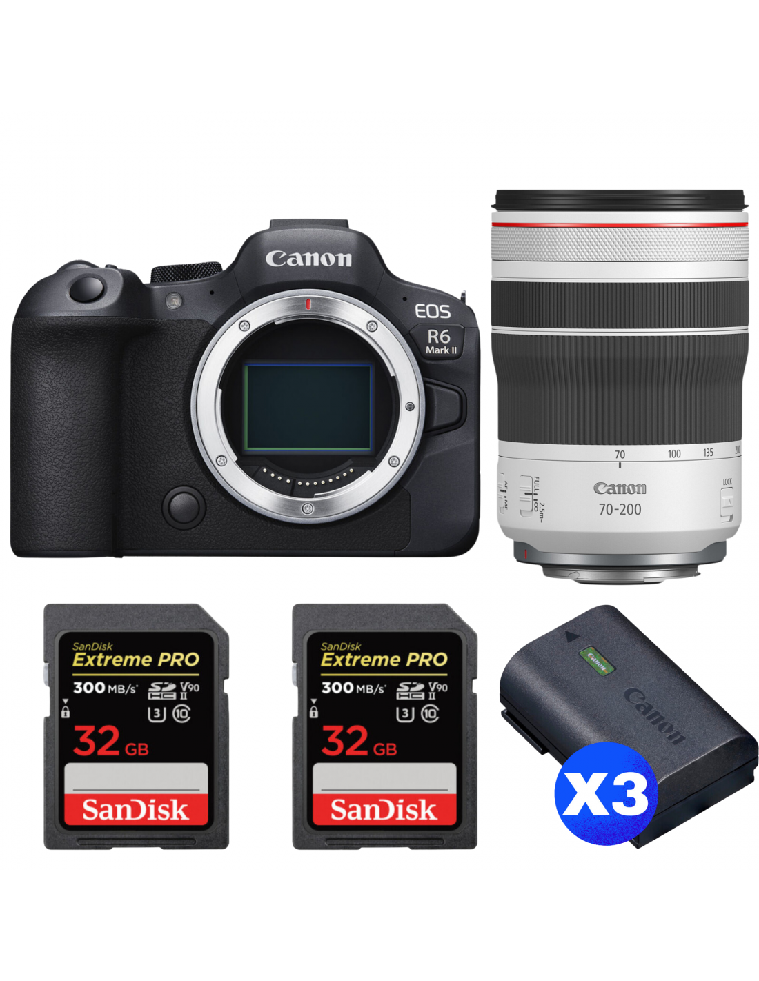 Canon EOS R6 Mark II + RF 70-200mm f/4 L IS USM + 2 SanDisk 32GB Extreme PRO UHS-II SDXC 300 MB/s + 3 Canon LP-E6NH