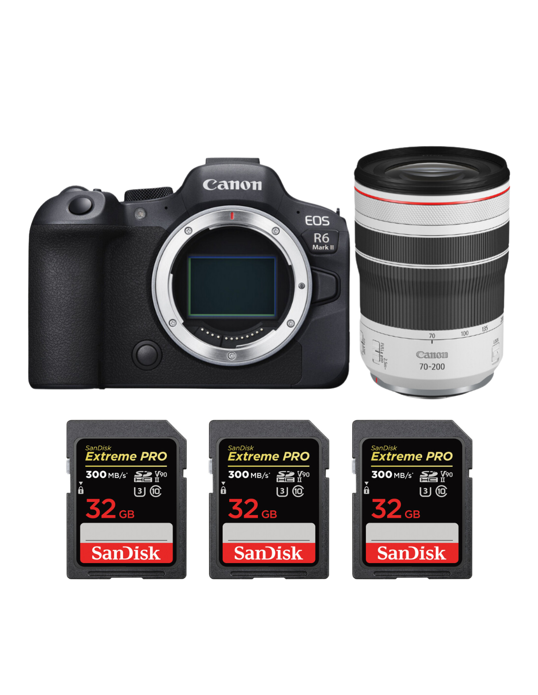 Canon EOS R6 Mark II + RF 70-200mm f/4 L IS USM + 3 SanDisk 32GB Extreme PRO UHS-II SDXC 300 MB/s