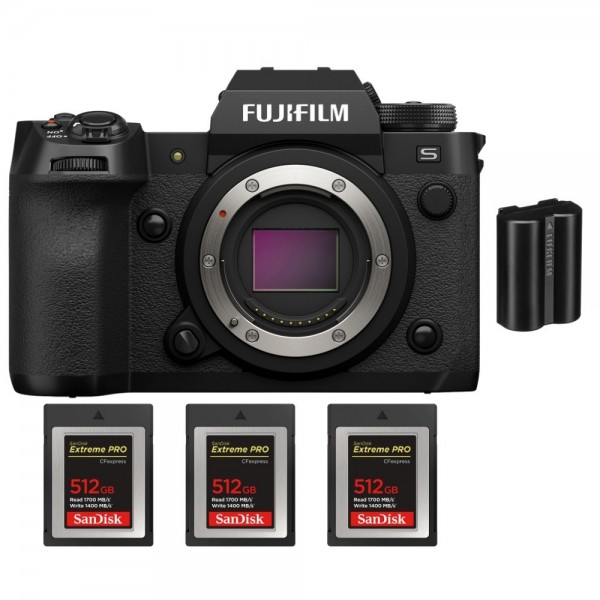 Fujifilm X-H2S + 3 SanDisk 512GB Extreme PRO CFexpress Type B + 1 Fujifilm NP-W235 - Appareil Photo APS-C
