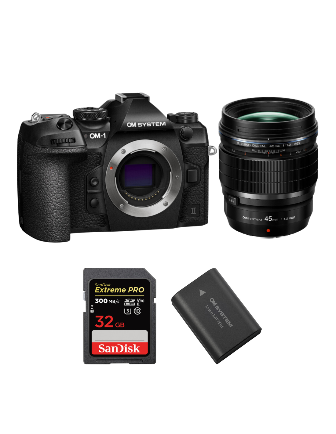 OM System OM-1 Mark II + ED 45mm f/1.2 PRO + 1 SanDisk 32GB Extreme PRO UHS-II SDXC 300 MB/s + 1 OM System BLX-1