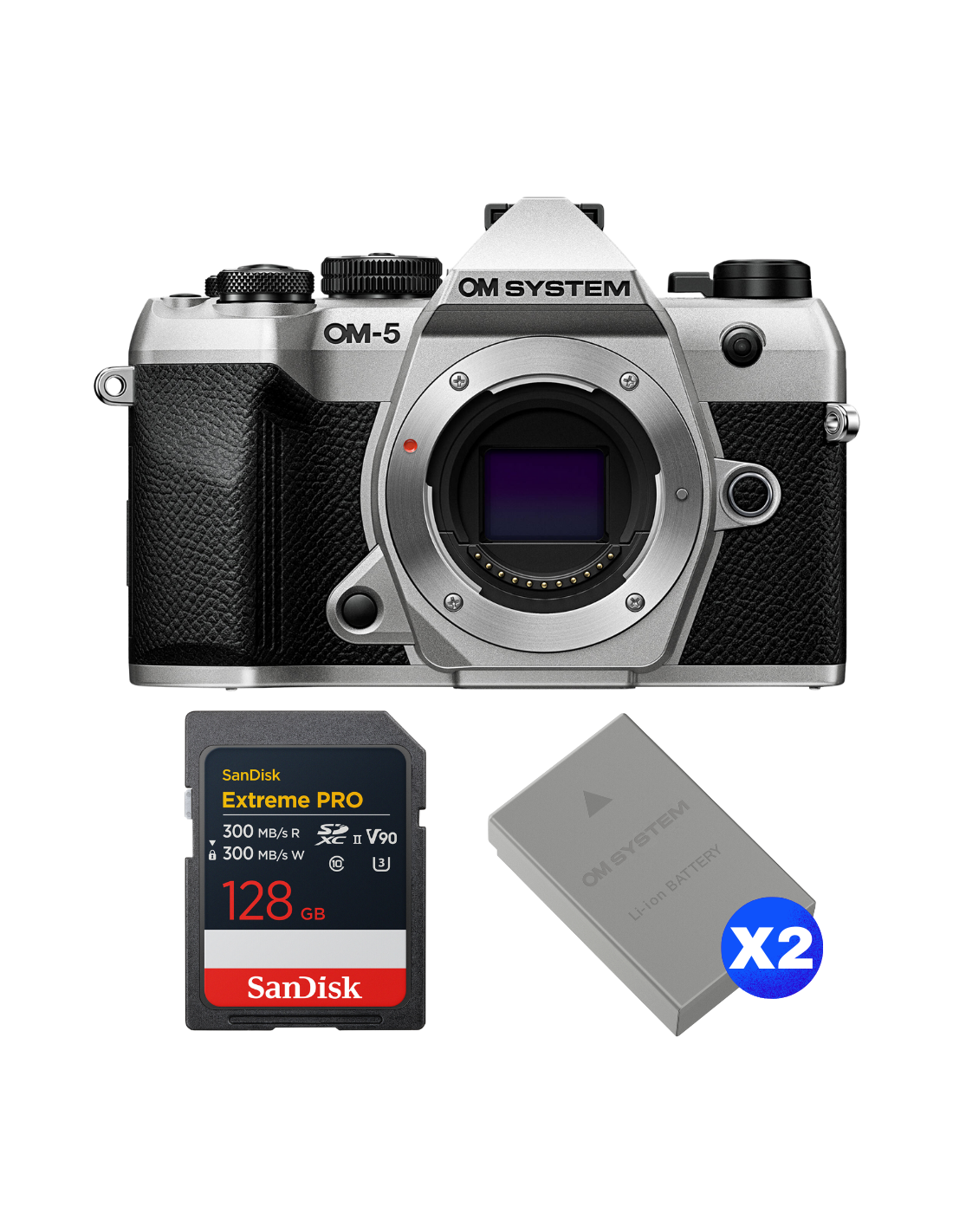OM SYSTEM OM-5 Mark II Silver + 1 SanDisk 128GB Extreme PRO UHS-II SDXC + 2 OM System BLS-50