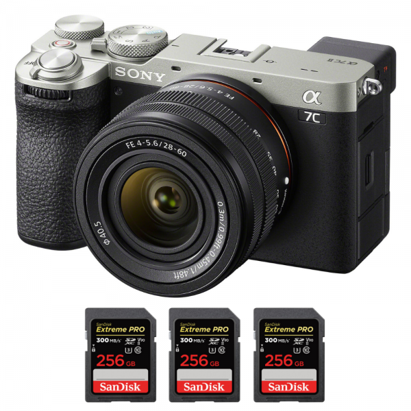 Sony A7C II Silver + FE 28-60mm f/4-5.6 + 3 SanDisk 256GB Extreme PRO UHS-II SDXC 300 MB/s - Appareil Photo Hybride