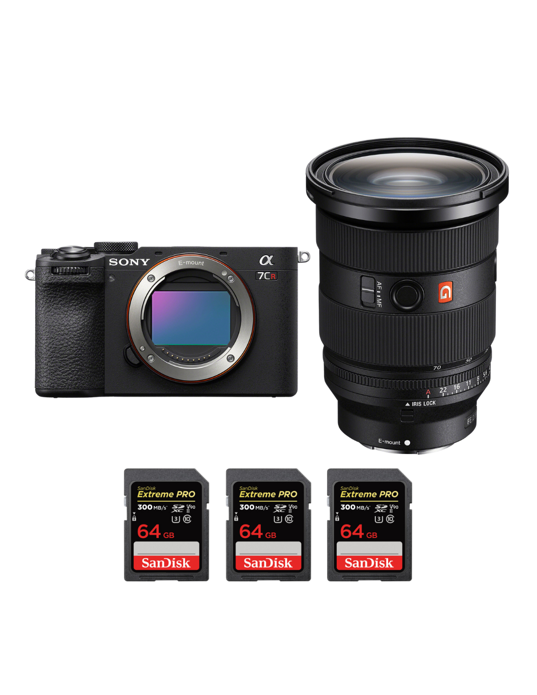 Sony A7CR Noir + FE 24-70mm f/2.8 GM II + 3 SanDisk 64GB Extreme PRO UHS-II SDXC 300 MB/s - Appareil Photo Hybride