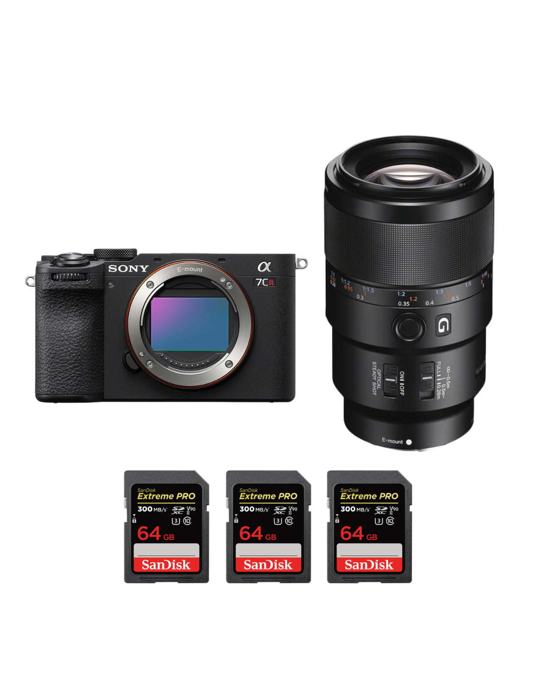 Sony A7CR Noir + FE 90mm f/2.8 Macro G OSS + 3 SanDisk 64GB Extreme PRO UHS-II SDXC 300 MB/s - Appareil Photo Hybride