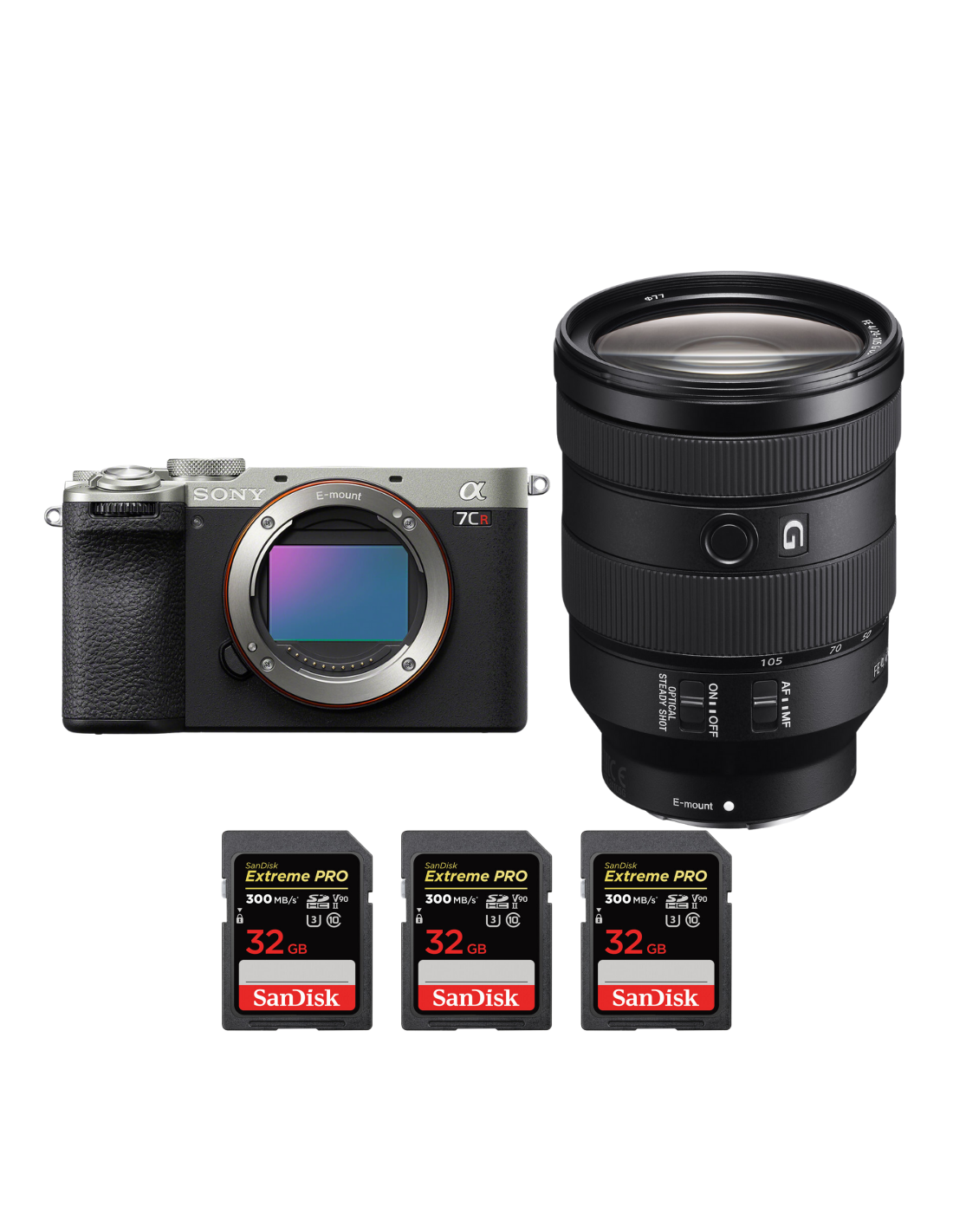 Sony A7CR Silver + FE 24-105mm f/4 G OSS + 3 SanDisk 32GB Extreme PRO UHS-II SDXC 300 MB/s - Appareil Photo Hybride