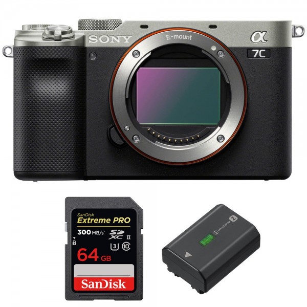 Sony A7C Nu Silver + SanDisk 64GB Extreme PRO UHS-II SDXC 300 MB/s + Sony NP-FZ100 - Appareil Photo Hybride
