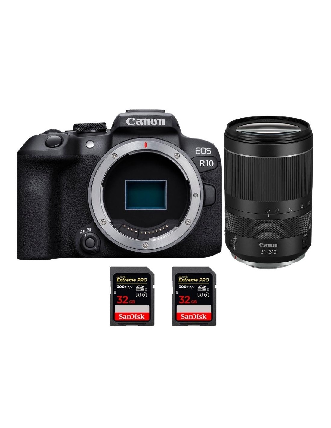 Canon EOS R10 + RF 24-240mm F4-6.3 IS USM + 2 SanDisk 32GB Extreme PRO UHS-II SDXC 300 MB/s APS-C