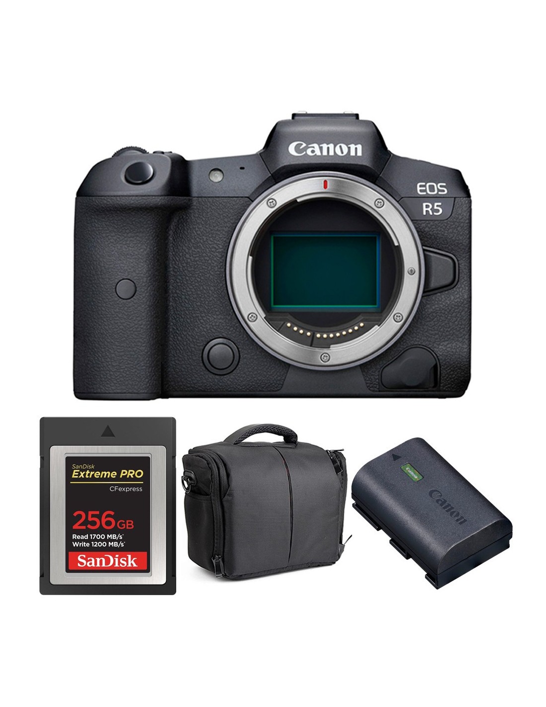 Canon EOS R5 Body + SanDisk 256GB Extreme PRO CFexpress Type B + Canon LP-E6NH + Bag