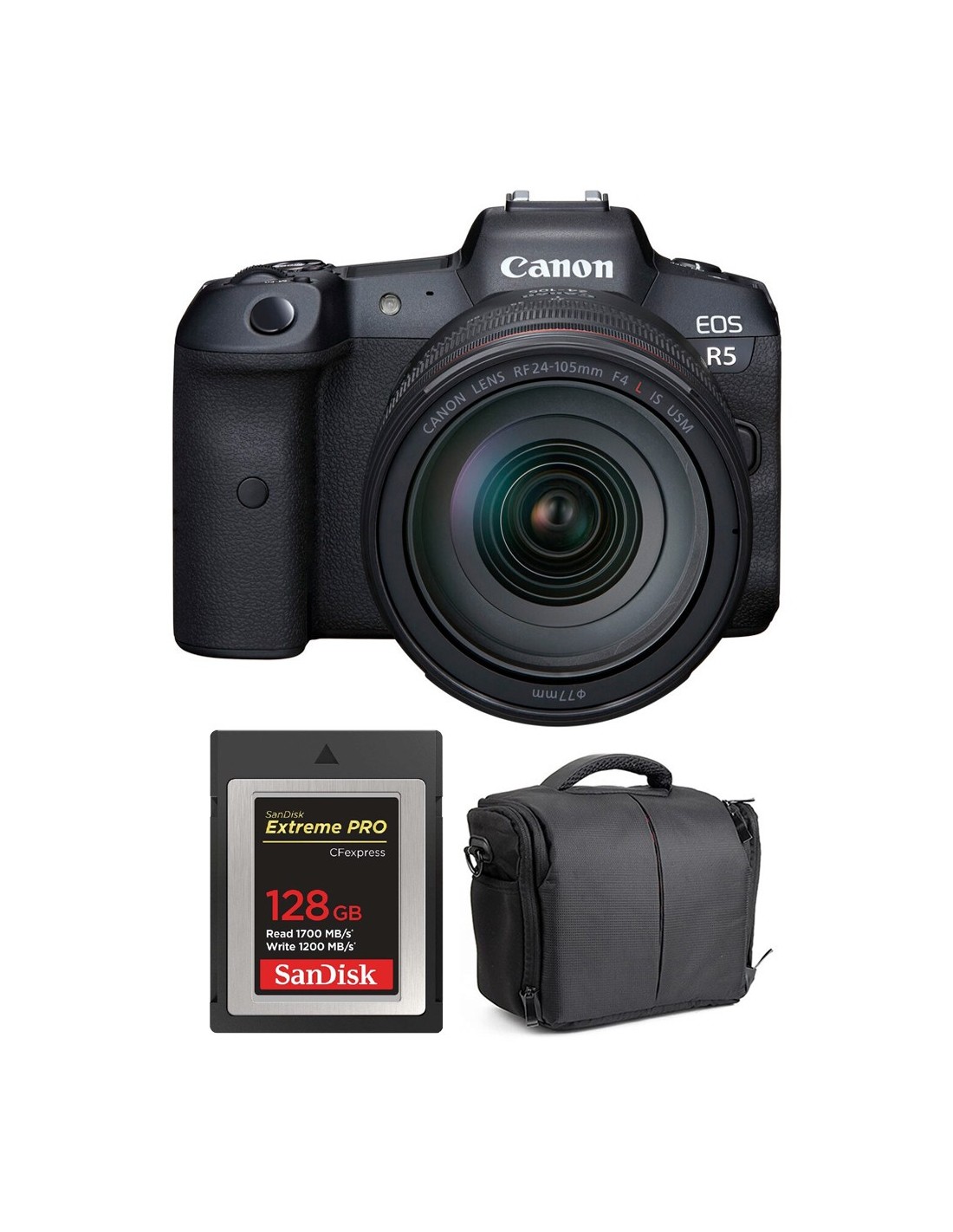 Canon EOS R5 + RF 24-105mm f/4L IS USM + SanDisk 128GB Extreme PRO CFexpress Type B + Bag