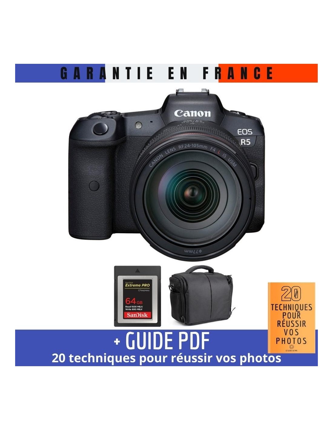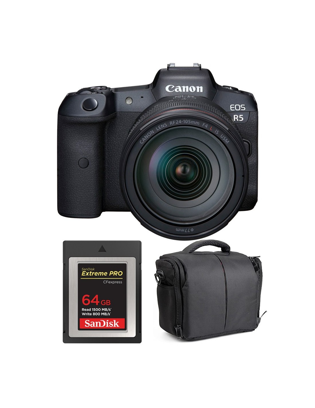 Canon EOS R5 + RF 24-105mm f/4L IS USM + SanDisk 64GB Extreme PRO CFexpress Type B + Bag