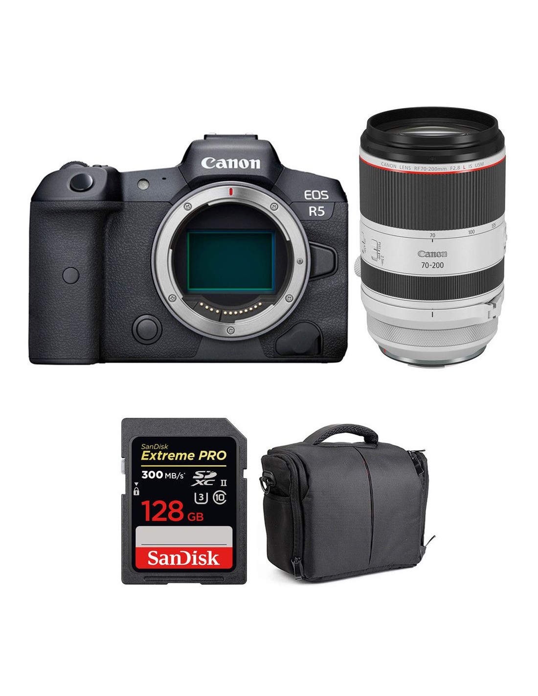Canon EOS R5 + RF 70-200mm f/2.8L IS USM + SanDisk 128GB Extreme PRO UHS-II SDXC 300 MB/s + Bag