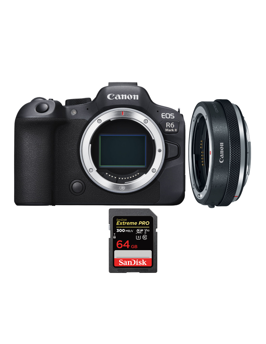 Canon EOS R6 Mark II + Canon EF-EOS R Premium + 1 SanDisk 64GB Extreme PRO UHS-II SDXC 300 MB/s
