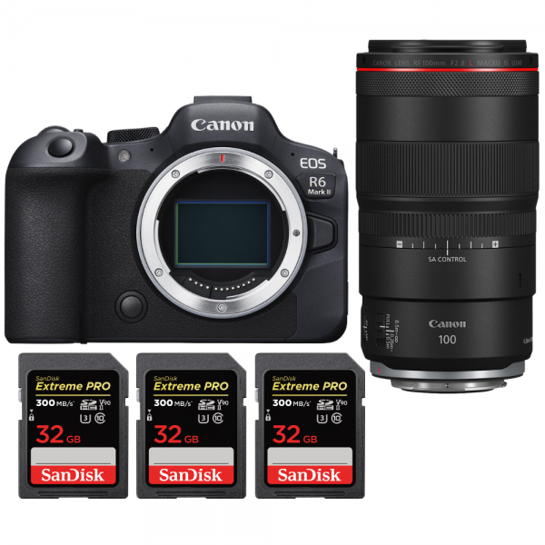 Canon EOS R6 Mark II + RF 100mm f/2.8 L Macro IS USM + 3 SanDisk 32GB Extreme PRO UHS-II SDXC 300 MB/s