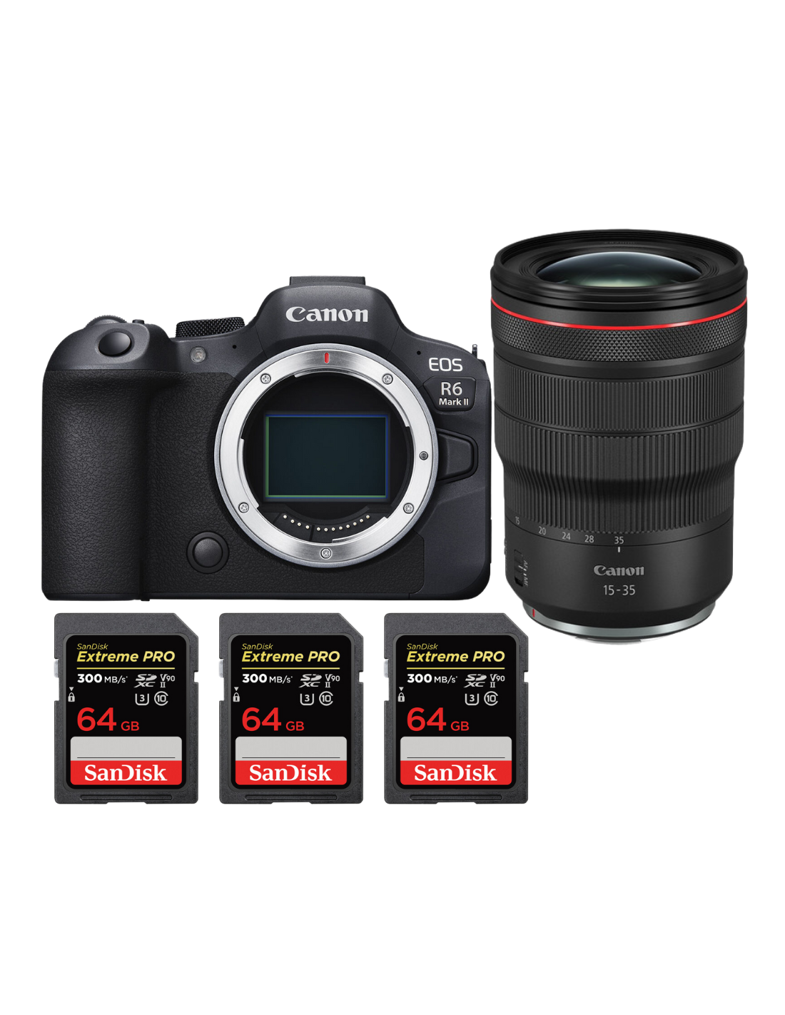 Canon EOS R6 Mark II + RF 15-35mm f/2.8 L IS USM + 3 SanDisk 64GB Extreme PRO UHS-II SDXC 300 MB/s