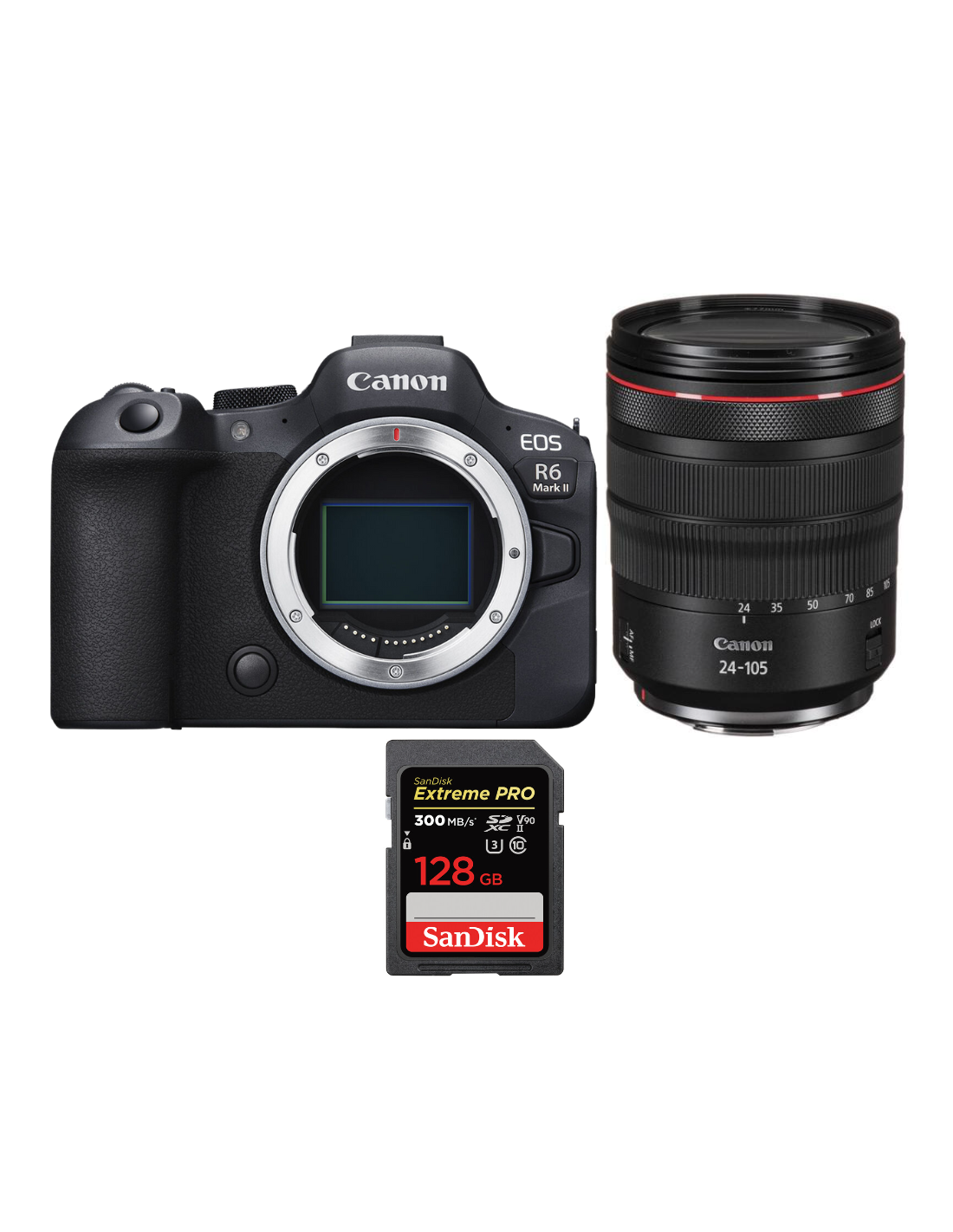 Canon EOS R6 Mark II + RF 24-105mm f/4 L IS USM + 1 SanDisk 128GB Extreme PRO UHS-II SDXC 300 MB/s