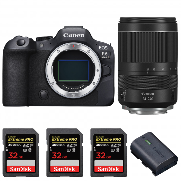 Canon EOS R6 Mark II + RF 24-240mm f/4-6.3 IS USM + 3 SanDisk 32GB Extreme PRO UHS-II SDXC 300 MB/s + 1 Canon LP-E6NH