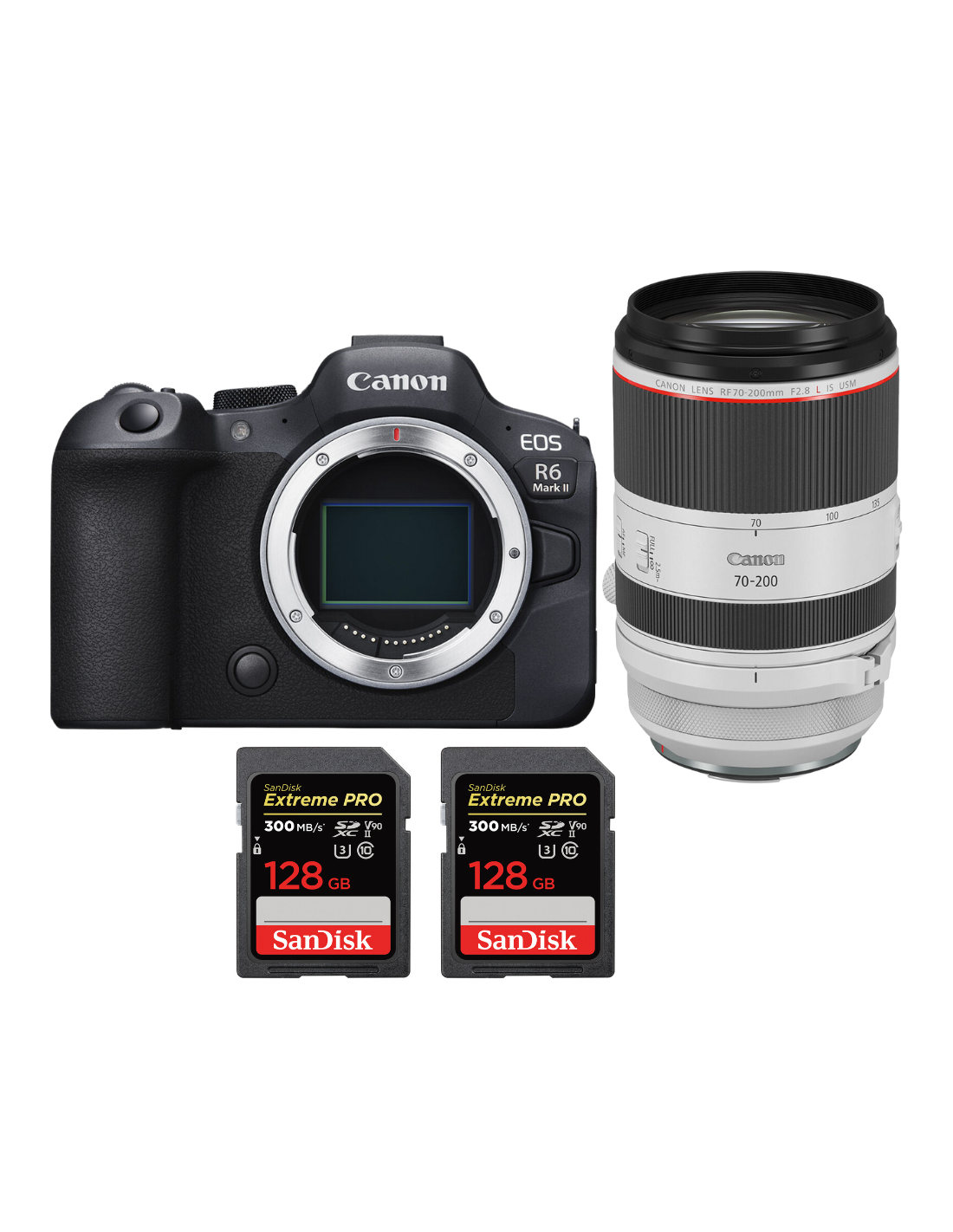 Canon EOS R6 Mark II + RF 70-200mm f/2.8 L IS USM + 2 SanDisk 128GB Extreme PRO UHS-II SDXC 300 MB/s