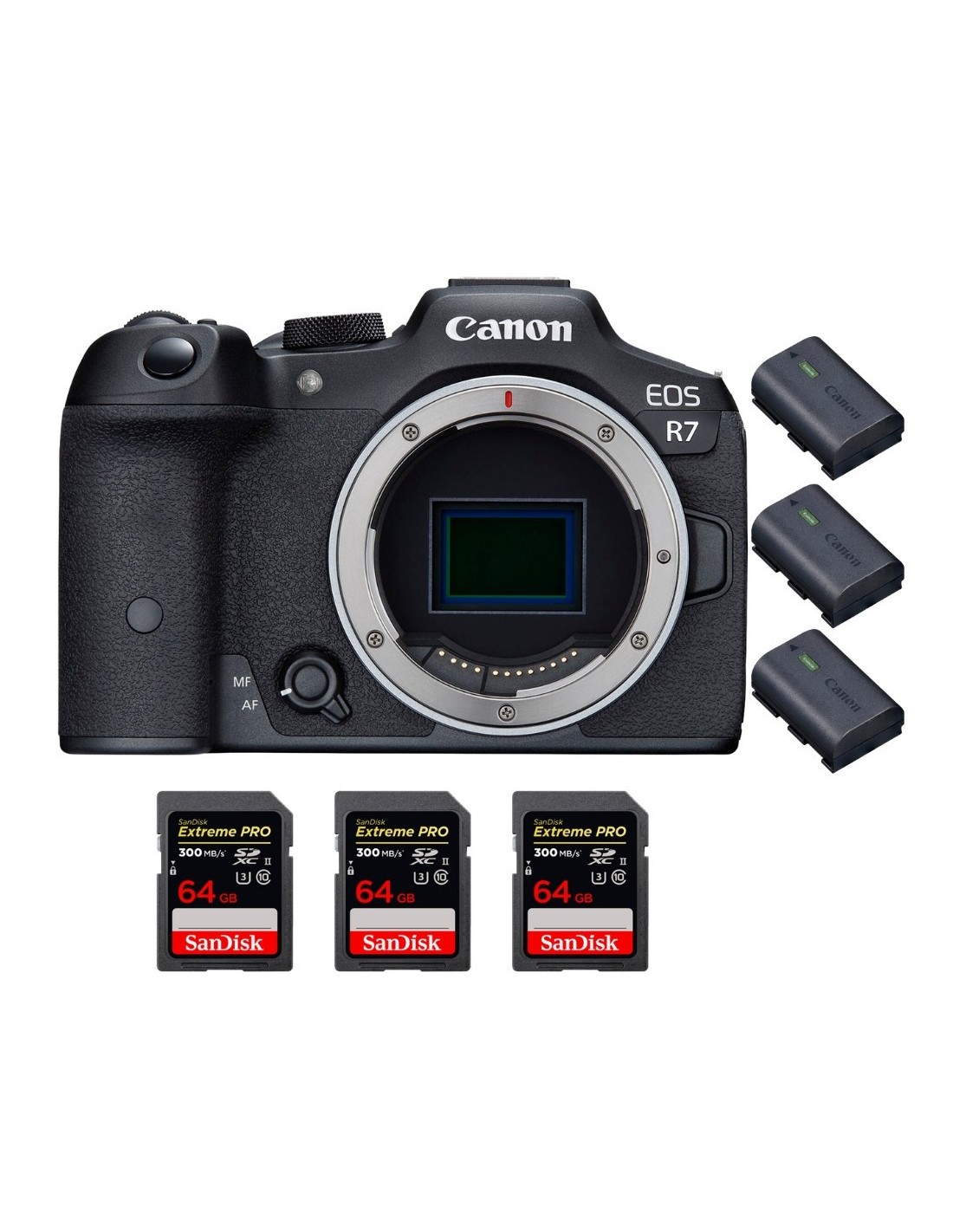 Canon EOS R7 + 3 SanDisk 64GB Extreme PRO UHS-II SDXC 300 MB/s + 3 Canon LP-E6NH