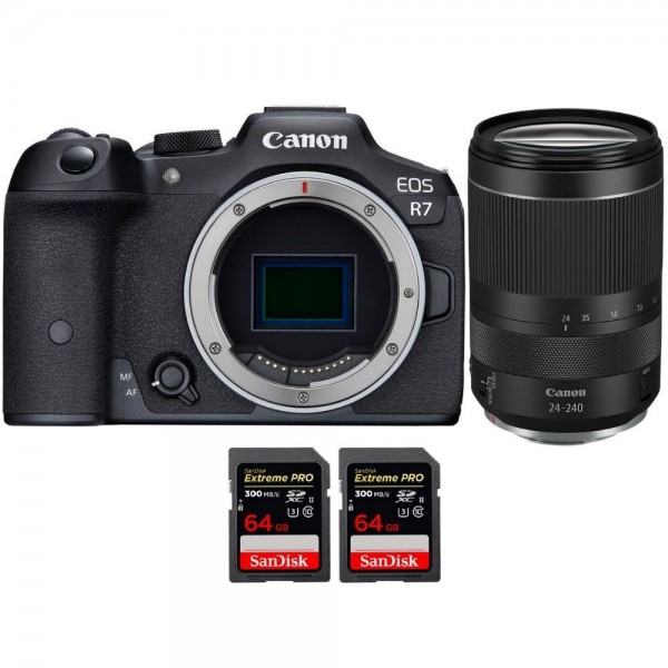 Canon EOS R7 + RF 24-240mm F4-6.3 IS USM + 2 SanDisk 64GB Extreme PRO UHS-II SDXC 300 MB/s