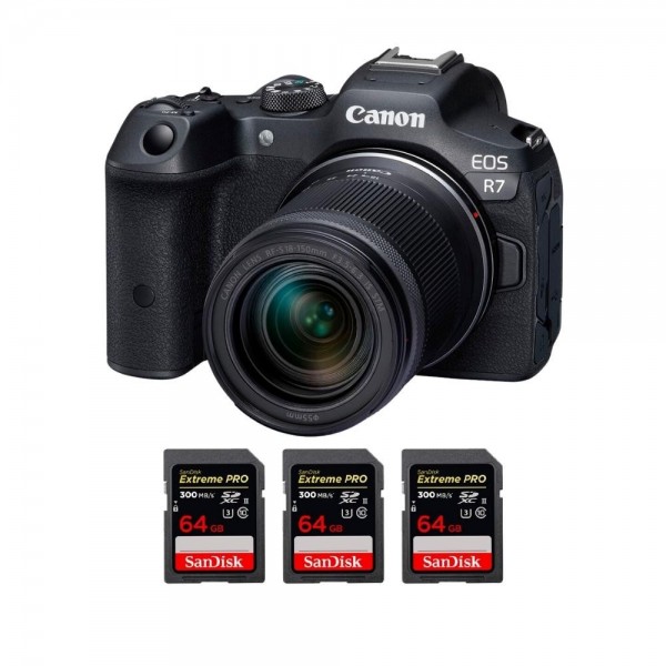 Canon EOS R7 + RF-S 18-150mm STM + 3 SanDisk 64GB Extreme PRO UHS-II SDXC 300 MB/s