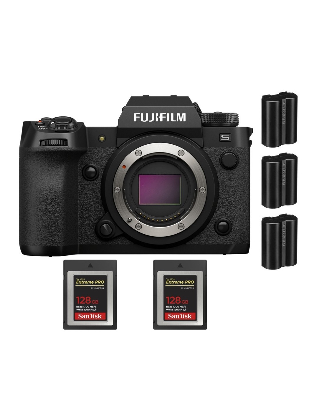 Fujifilm X-H2S + 2 SanDisk 128GB Extreme PRO CFexpress Type B + 3 Fujifilm NP-W235