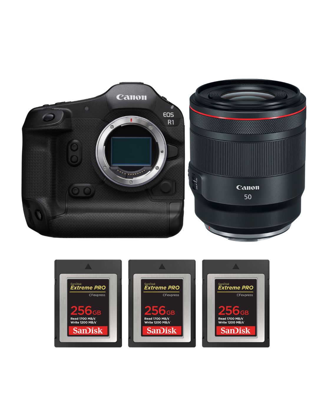 Canon EOS R1 + RF 50mm f/1.2 L USM + 3 SanDisk 256GB Extreme PRO CFexpress Type B