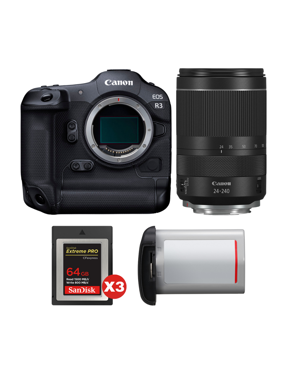 Canon EOS R3 + RF 24-240mm f/4-6.3 IS USM + 3 SanDisk 64GB Extreme PRO CFexpress Type B + Canon LP-E