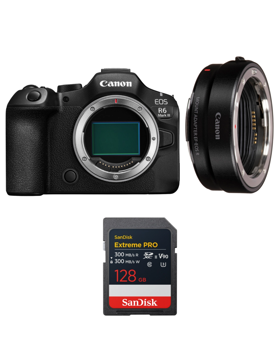Canon EOS R6 Mark III + Canon EF-EOS R + 1 SanDisk 128GB Extreme PRO UHS-II SDXC