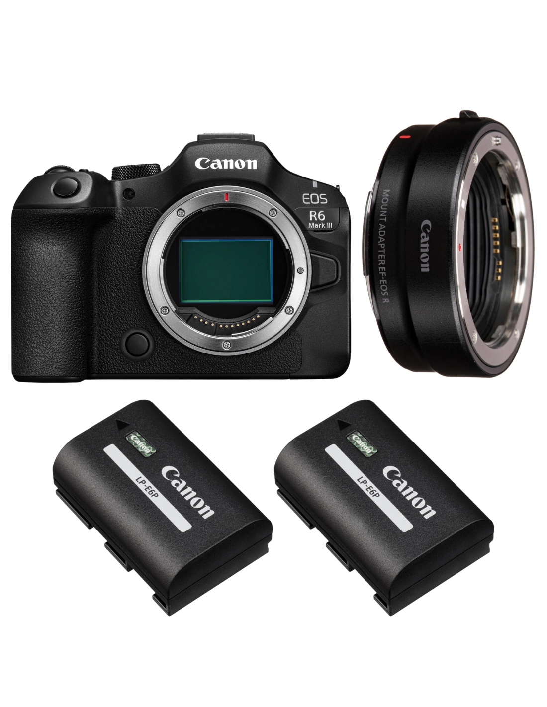 Canon EOS R6 Mark III + Canon EF-EOS R + 2 Canon LP-E6P