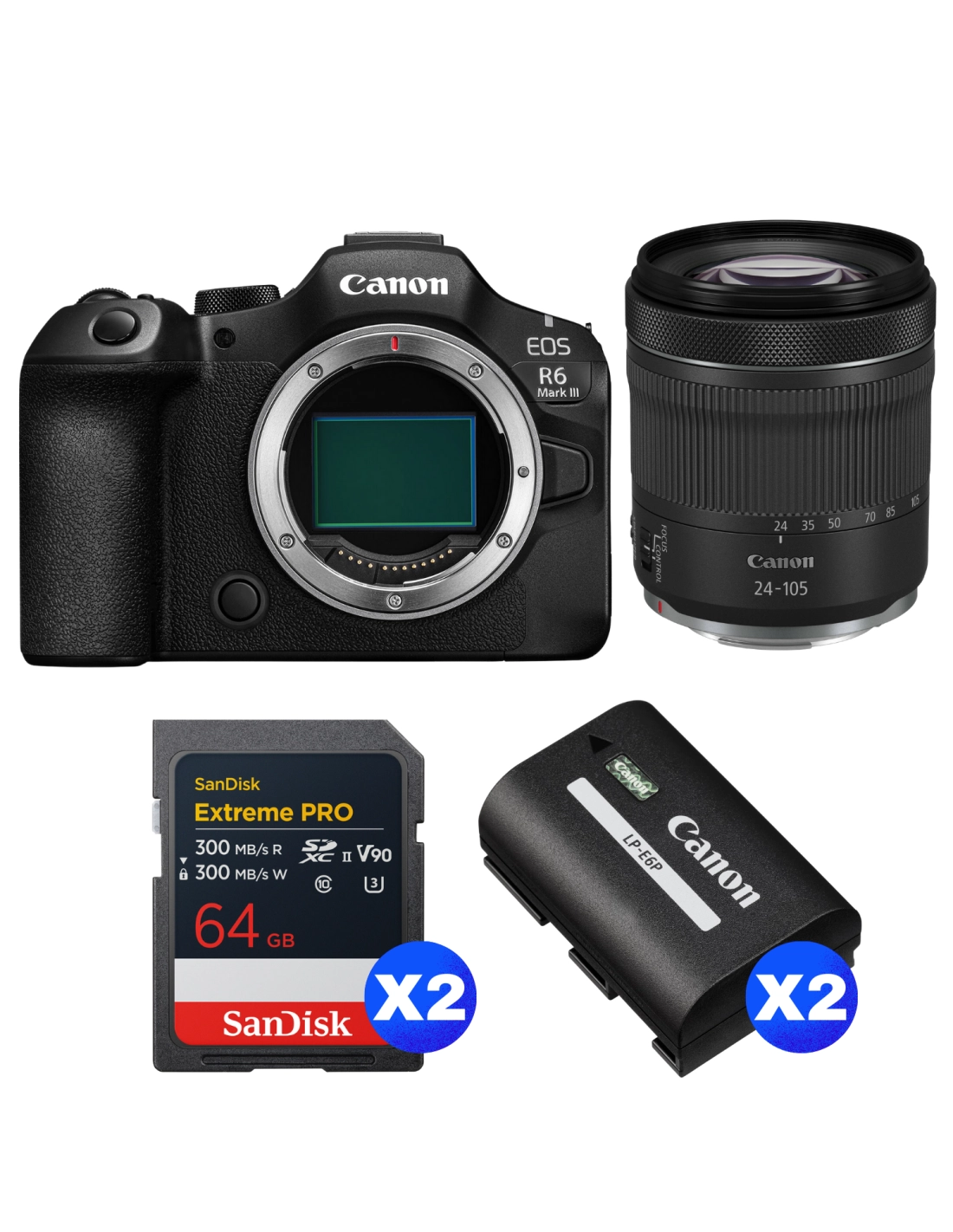 Canon EOS R6 Mark III + RF 24-105mm f/4-7.1 IS STM + 2 SanDisk 64GB Extreme PRO UHS-II SDXC + 2 Canon LP-E6P