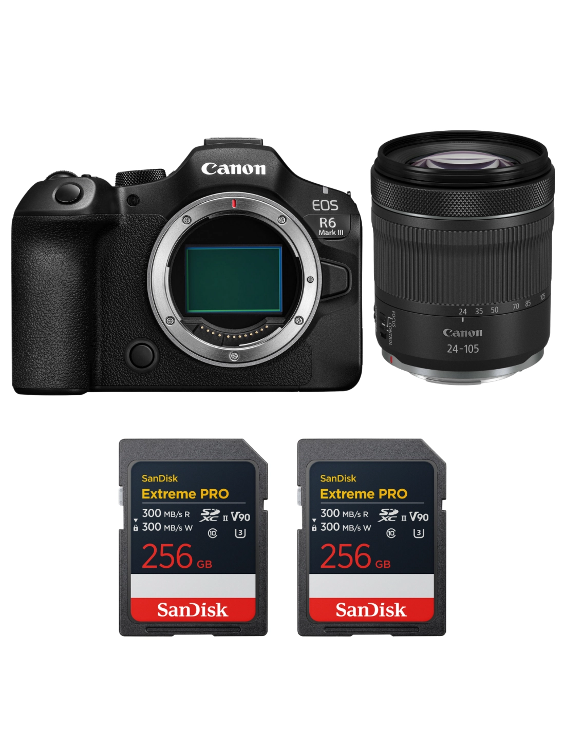 Canon EOS R6 Mark III + RF 24-105mm f/4-7.1 IS STM + 2 SanDisk 256GB Extreme PRO UHS-II SDXC