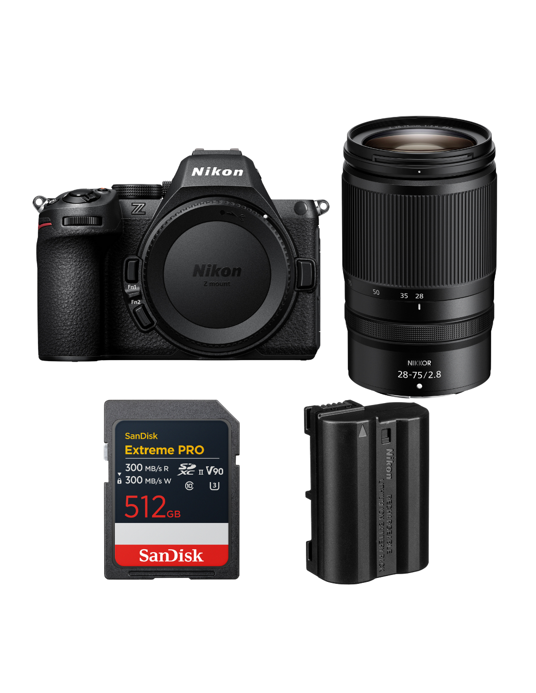 Nikon Z5 II + 28-75mm f/2.8 + 1 SanDisk 512GB Extreme PRO UHS-II SDXC + Nikon EN-EL15c